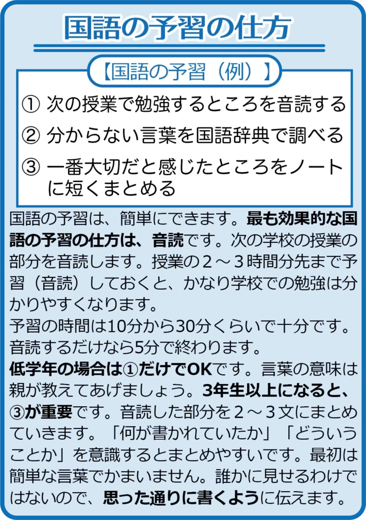 自治体や学校による「家庭学習の手引き」等では、学んだことの定着を図る復習に重きが置かれていることが多く、「予習」については具体的な言及があまりみられない気がしています。